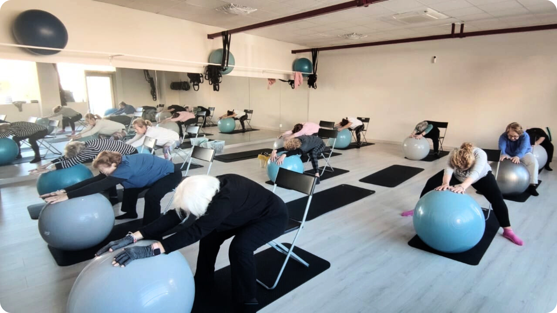 Trabajamos de forma suave y progresiva el equilibrio, la coordinación, la fuerza funcional y la postura, siempre respetando el ritmo de cada persona.